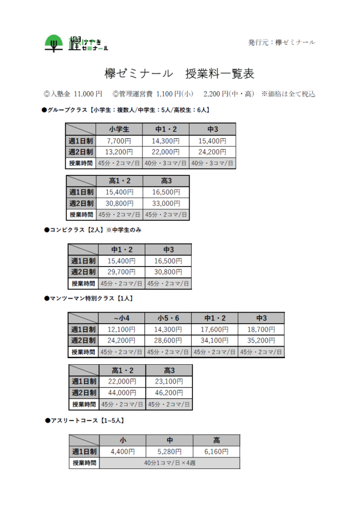 、欅ゼミナールにて実施します。